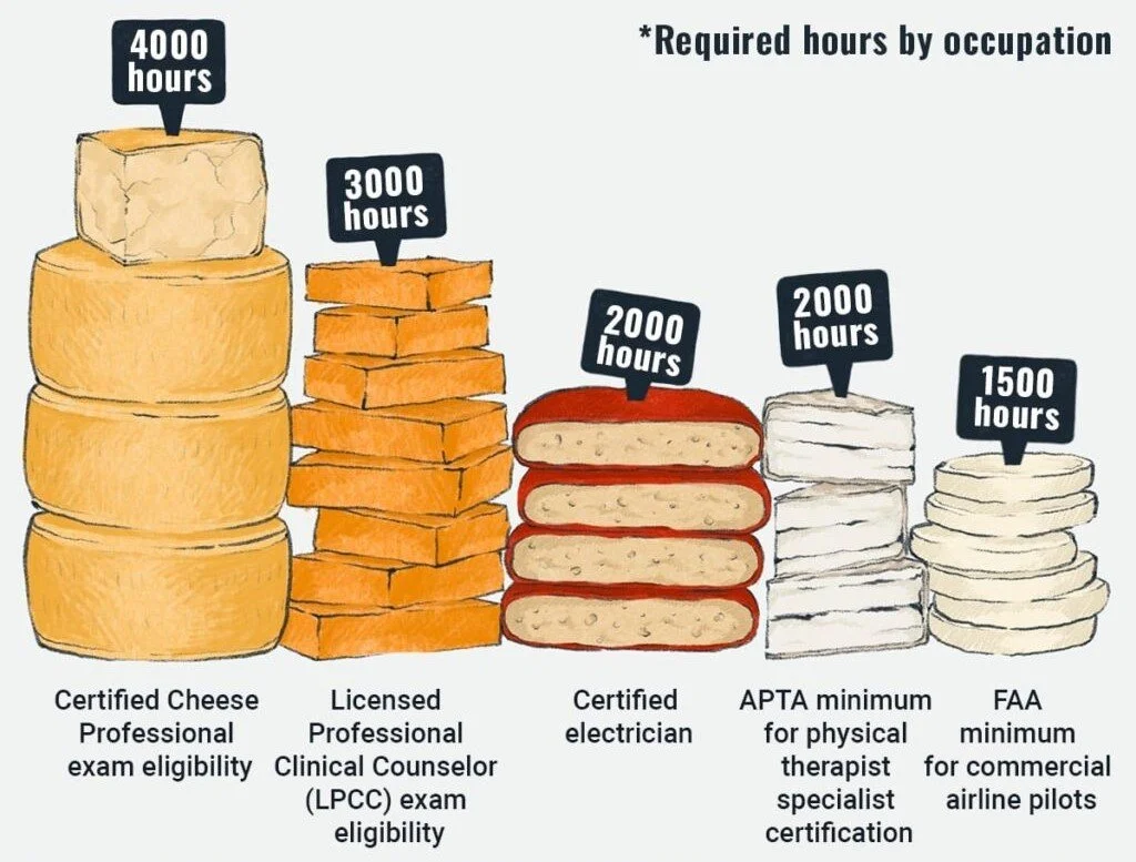 So why discuss wine certification?....Well, when the American Cheese Society realized that there was no structured certification for Cheese Professionals (retailers, sales, distribution, and producers) back in 2011/2012, they began developing the Certified Cheese Professional® Exam. It launched in 2013 and today, there are about 1,000+ American Cheese Society, Certified Cheese Professionals® around the globe.